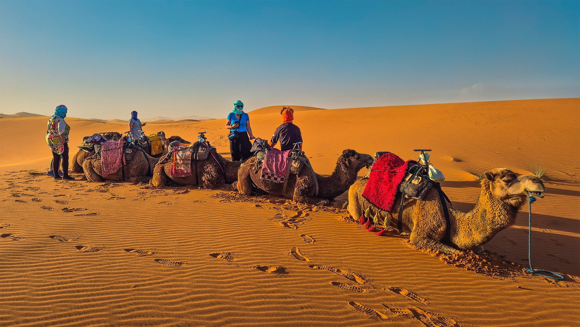 Experience the magic of the Sahara on a sunset camel trek through the dunes