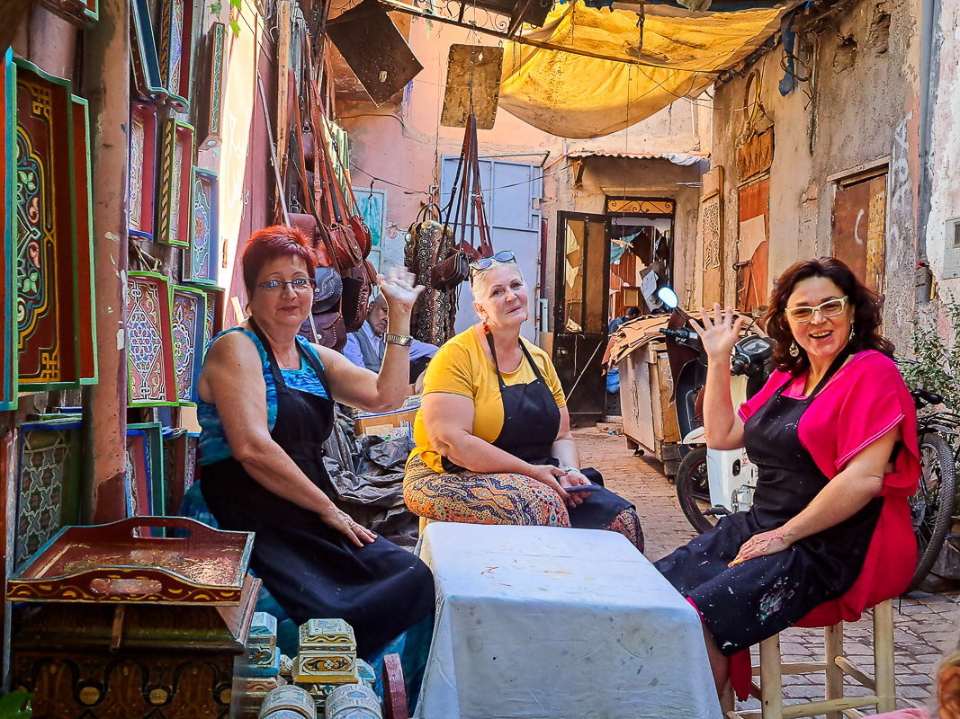 Traditiona Crafts: Become a master craftsman for a day. Create your own ceramic tiles with classic patterns or a leather handbag. Or discover the magic of painting on wood and leather. Right in the heart of the souk, an experienced instructor will teach you how to work with a traditional donkey-hair brush – a technique passed down through generations.