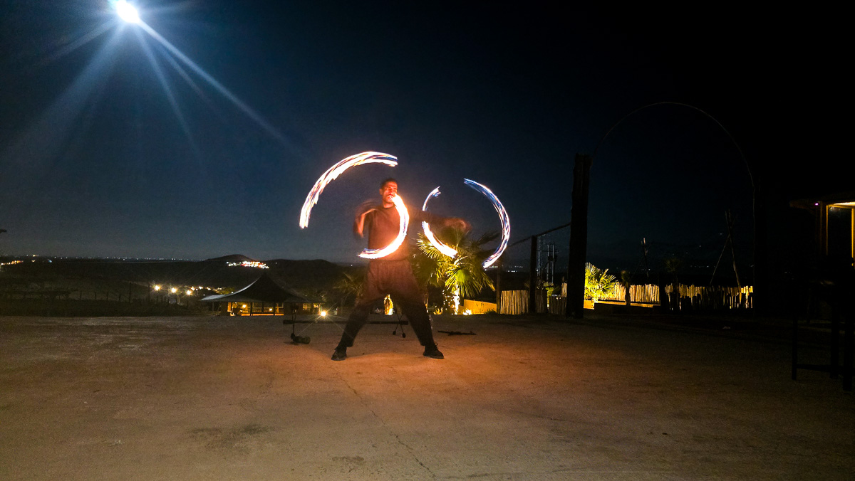 Evening you dive into authentic atmosphere. In berber tent you rest with a cup of mint tea and enjoy traditional Moroccan dinner. Day full of experiences you finish by the fire, to the sounds of live berber music and special fire show.
