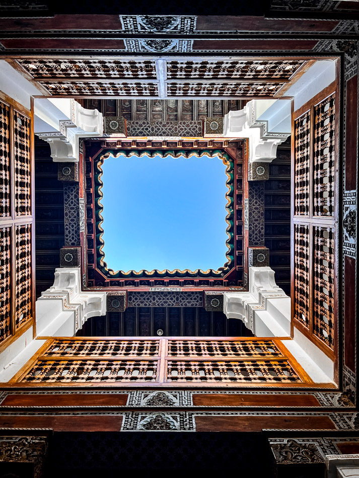 Bahia Palace: an oasis of peace and mastery of Moroccan craftsmanship. Enter the world of 19th-century Moroccan aristocracy, where behind high walls lies the Bahia Palace ("Palace of Beauty" in translation). This vast complex, which covers almost 2 hectares, was begun by Grand Vizier Si Musa in the 1860s and completed by his son Si Ba Ahmed. Today, the palace is a peaceful historic landmark, attracting tourists with its beautifully decorated inner courtyards and traditional riad gardens, which represent the pinnacle of Islamic architecture and design. A walk through the rooms is a journey into an oriental fairy tale.