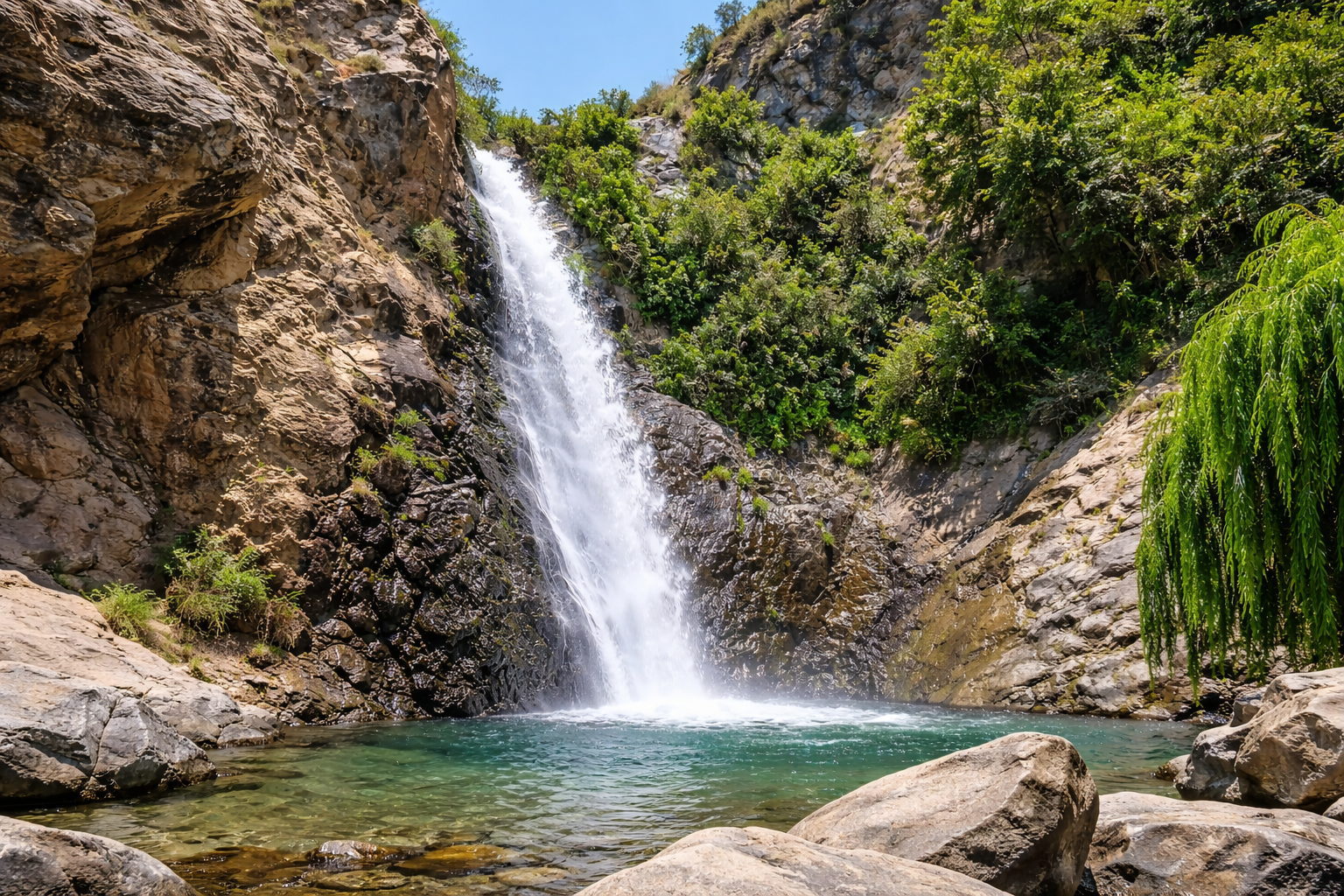 Upon arrival, you will be instantly enchanted by the panorama of red cliffs, lush olive groves, and fragrant tamarisks. An easy walk through the valley awaits us, offering stunning views of the falls from various perspectives.