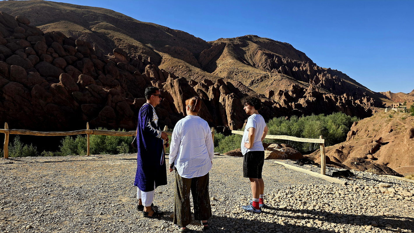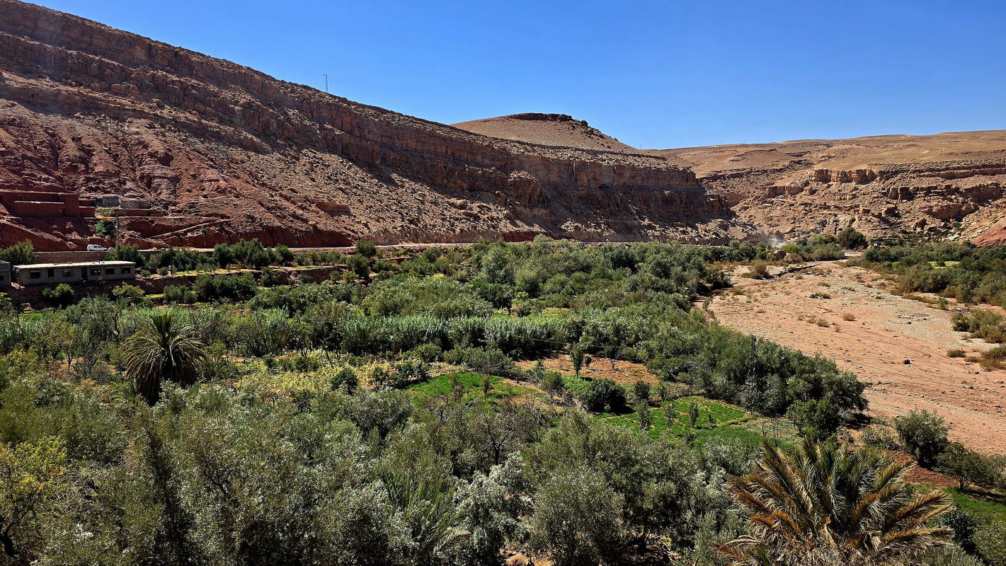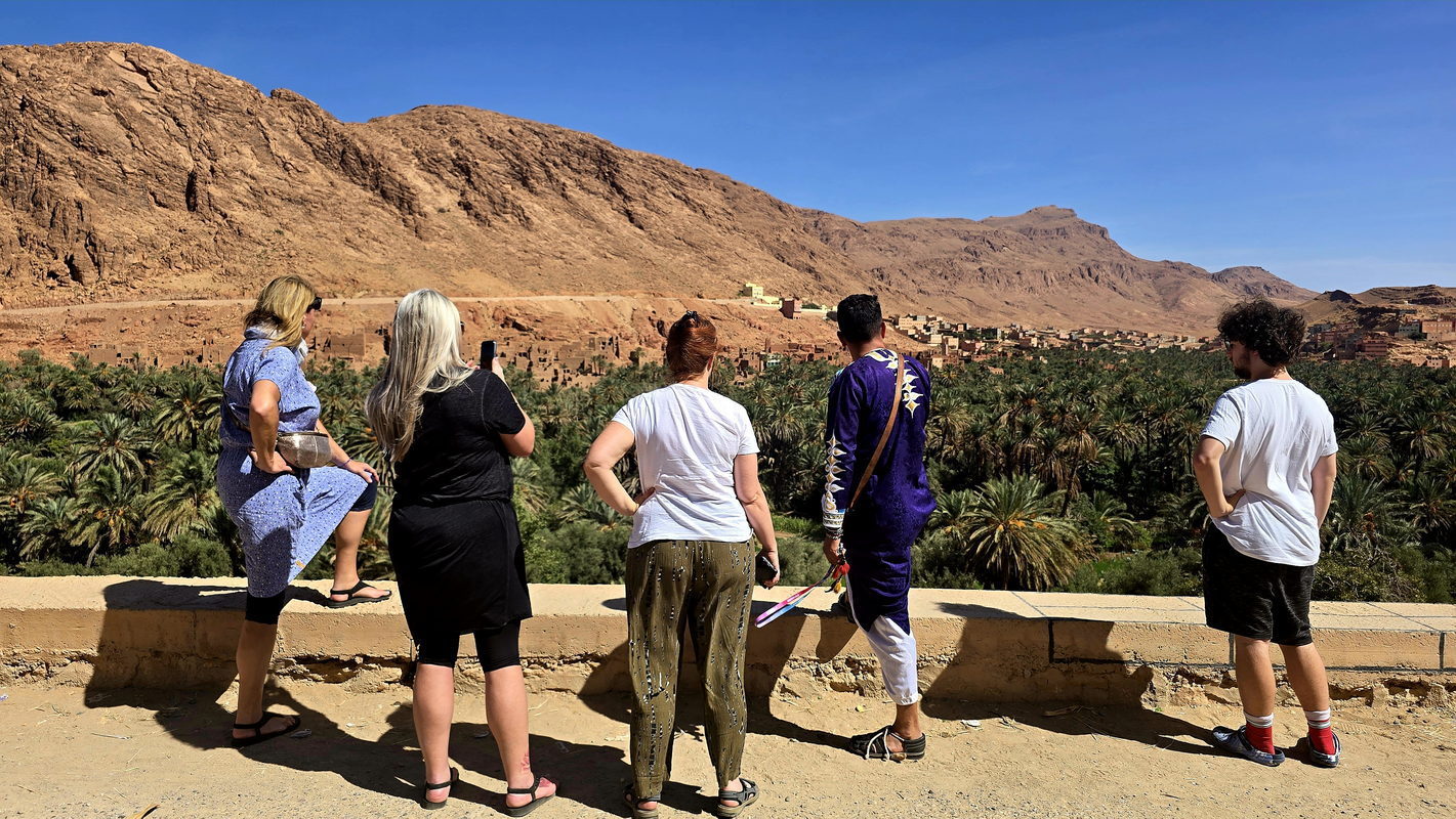 After breakfast, we will continue our journey through the Valley of a Thousand Kasbahs, a breathtaking landscape dotted with ancient mud-brick fortresses. Upon reaching Tinghir, a stunning oasis town, we will take a walk through the magnificent Todra Gorge. You will stroll beneath towering rock cliffs that soar up to 300 meters high - a popular destination for climbers worldwide. Along the base of the cliffs flows a gentle stream, offering a perfect spot to cool off during the warm summer days.