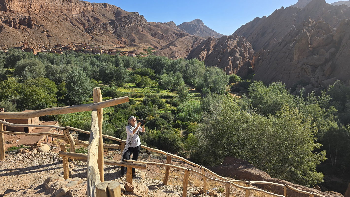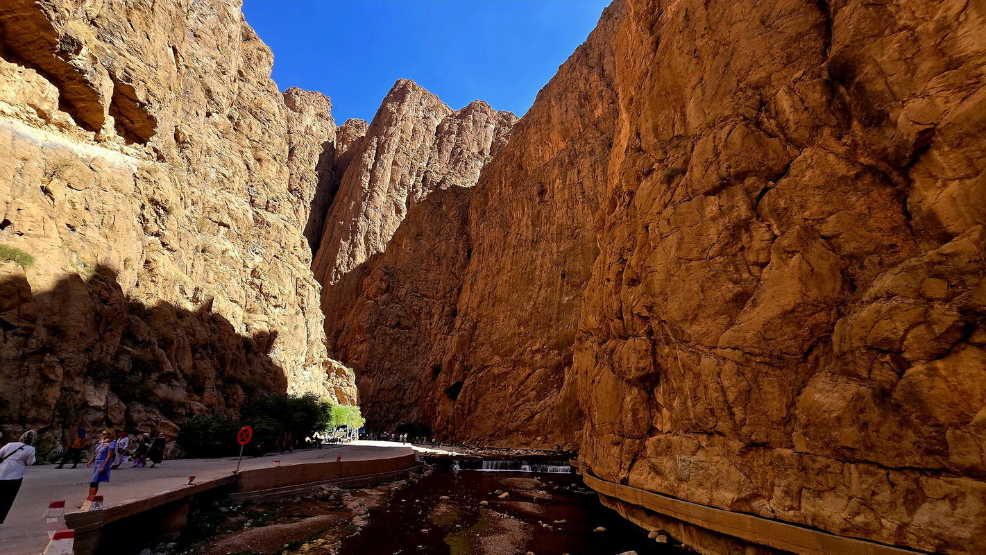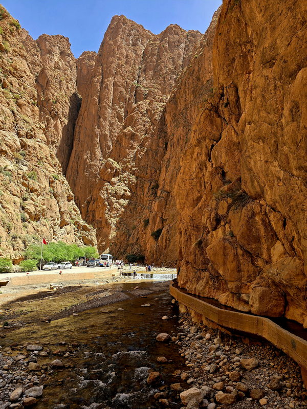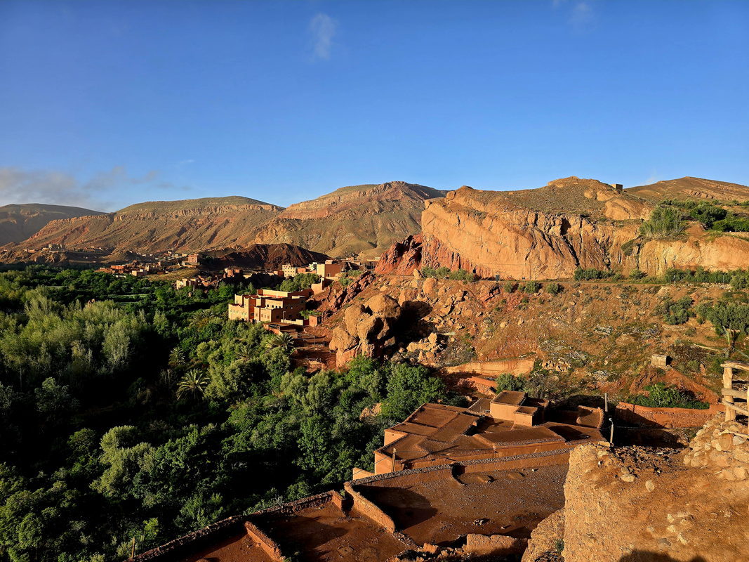 After breakfast, we will continue our journey through the Valley of a Thousand Kasbahs, a breathtaking landscape dotted with ancient mud-brick fortresses. Upon reaching Tinghir, a stunning oasis town, we will take a walk through the magnificent Todra Gorge. You will stroll beneath towering rock cliffs that soar up to 300 meters high - a popular destination for climbers worldwide. Along the base of the cliffs flows a gentle stream, offering a perfect spot to cool off during the warm summer days.