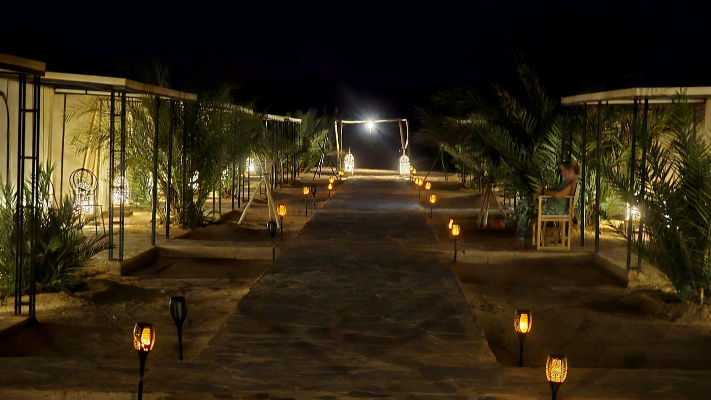 where the lights of the kasbahs in the area come on after sunset.