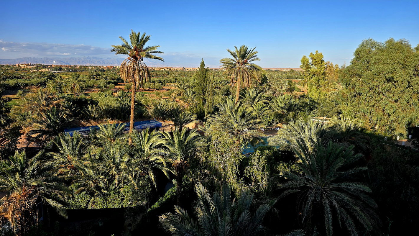panorama of the palm grove and the Atlas Mountains. A great experience