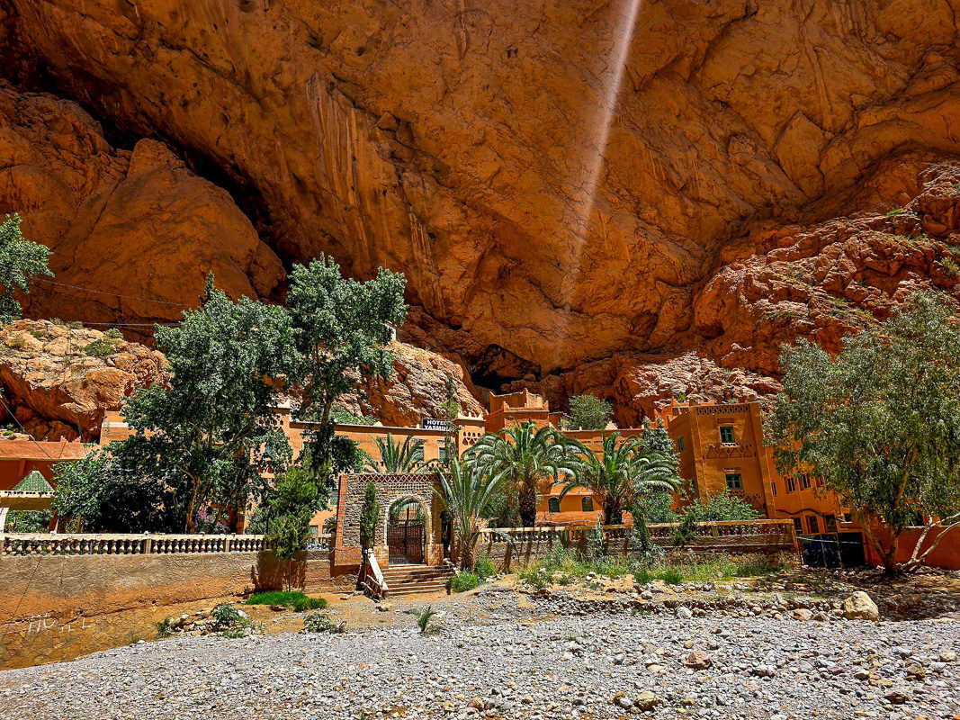 full of palm groves. Todra Gorge, the so-called rock cathedral (Todra